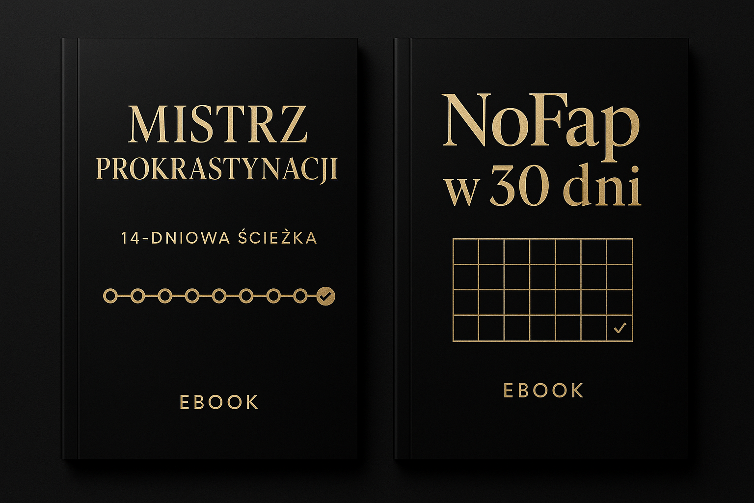 Masz dość odkładania i wiecznego „od jutra”? Dajemy Ci plan, nie motywacyjne cytaty. Nasze dwa ebooki to krótkie, treściwe programy w PDF, które prowadzą dzień po dniu. „Mistrz Prokrastynacji” rozbija odkładanie w 14 dni — diagnozujesz, co Cię blokuje, wdrażasz mikro-kroki, ustawiasz środowisko pod działanie i łapiesz tempo. „NoFap w 30 dni” porządkuje codzienność: rozumiesz wyzwalacze, wprowadzasz nawyki zastępcze, uczysz się trzymać kurs mimo pokus. Zero żargonu, zero waty — tylko zadania, checklisty i jasne instrukcje.